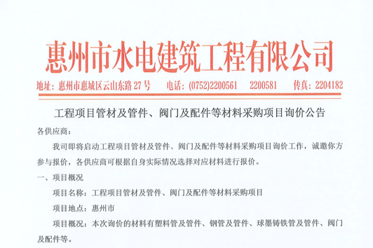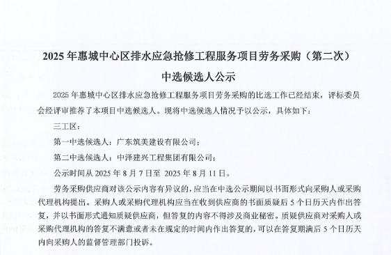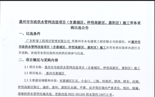 惠州市水電建筑工程有限公司勞務供應商庫擴庫評審結(jié)果公示……
